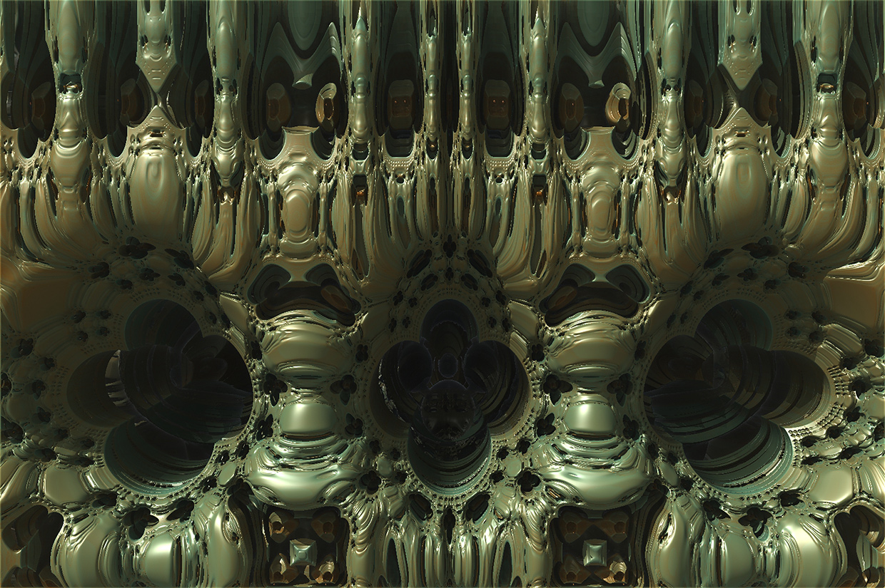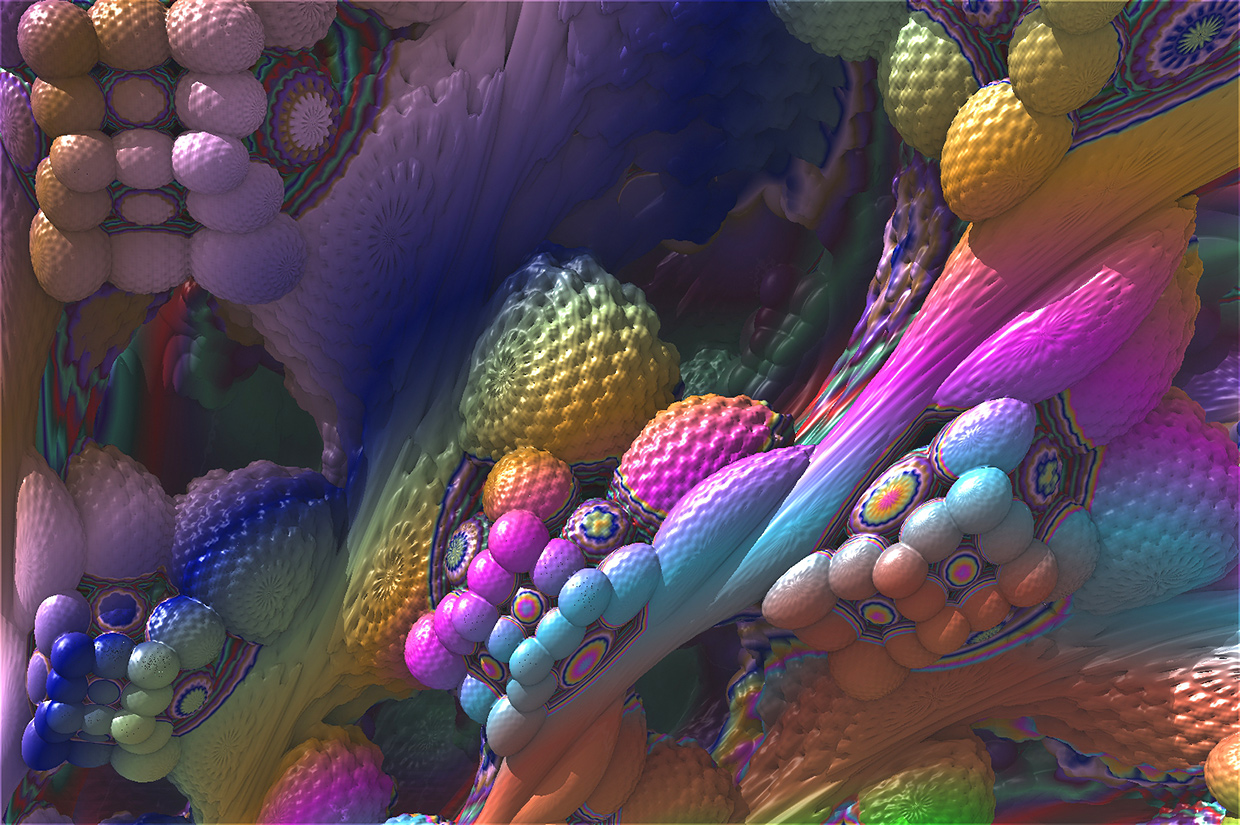 Die 3D Bilder zeigen abstrakte, mittels mathematischer Formeln erzeugte Objekte.