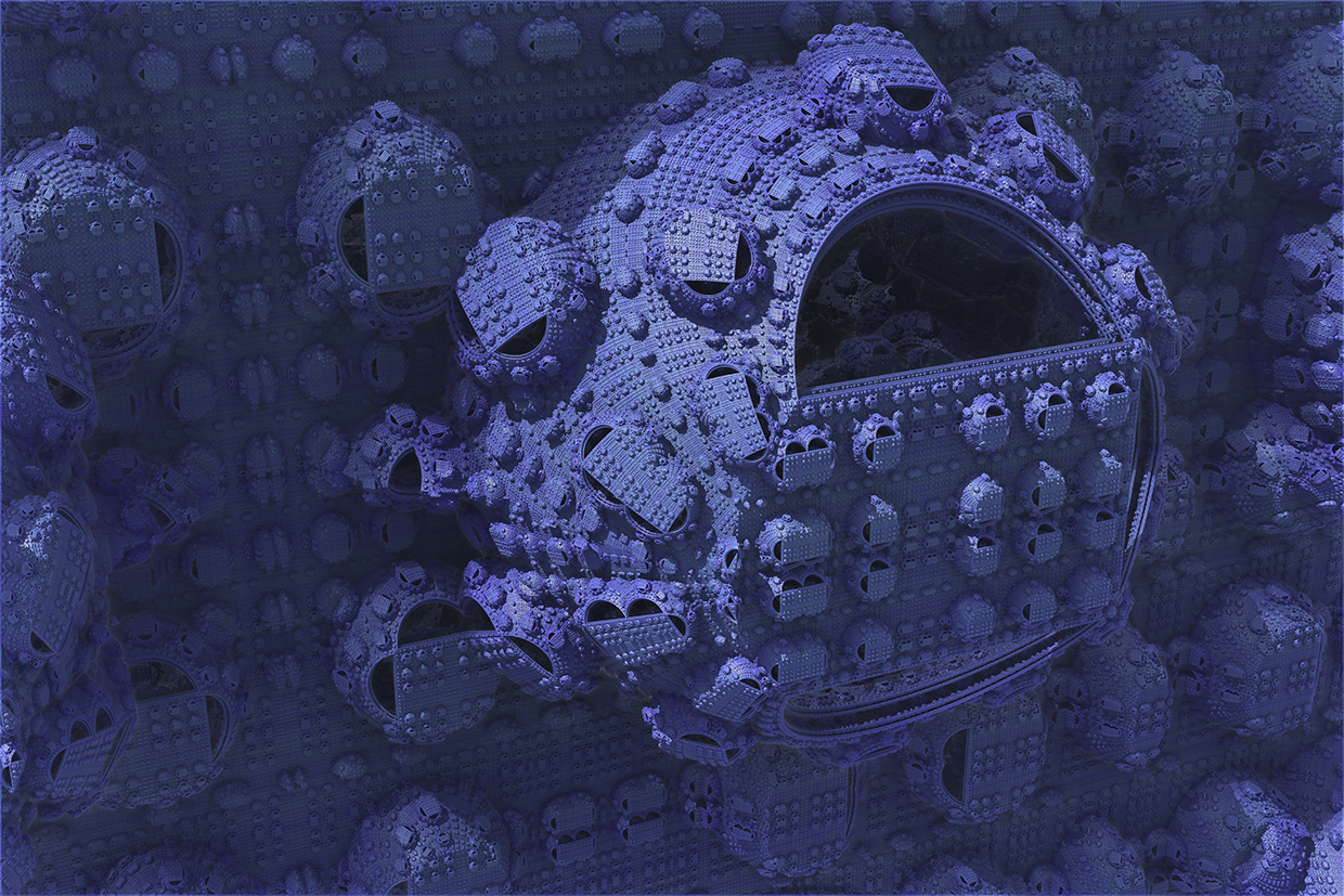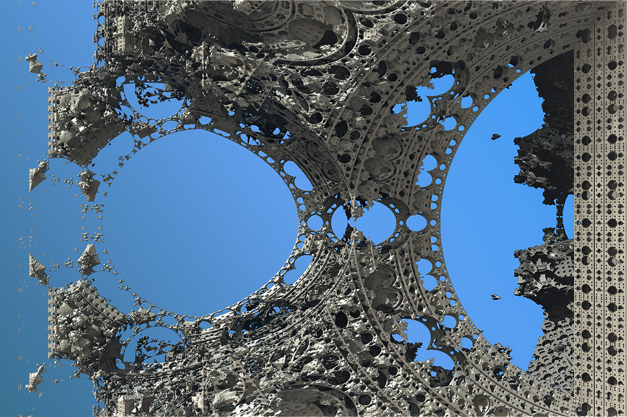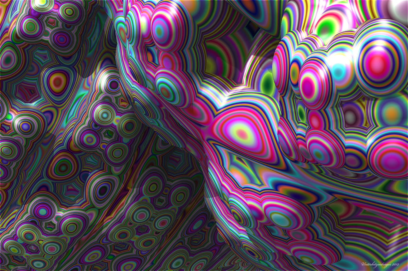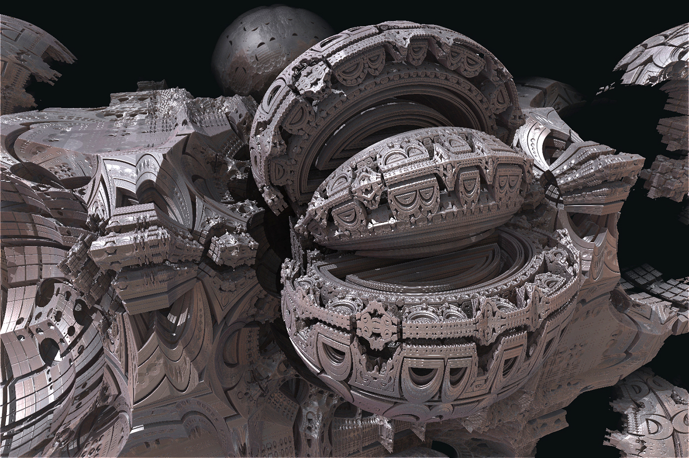 Die 3D Bilder zeigen abstrakte, mittels mathematischer Formeln erzeugte Objekte.
