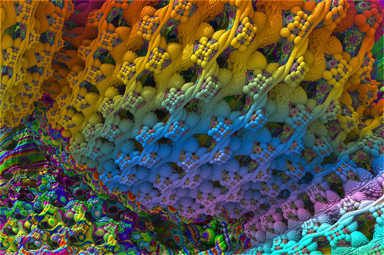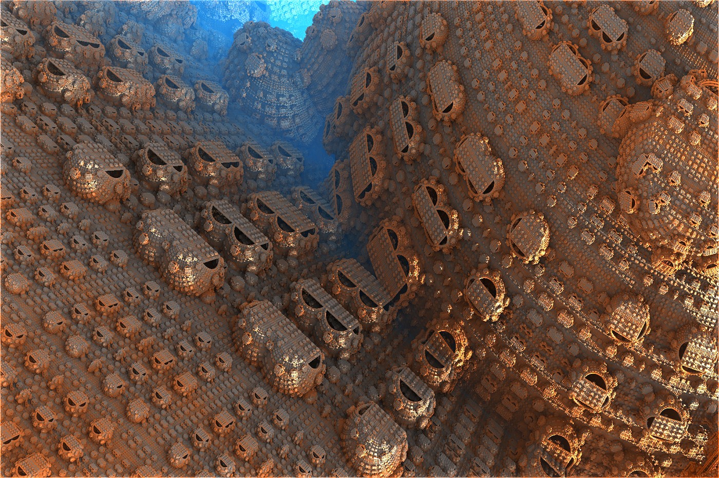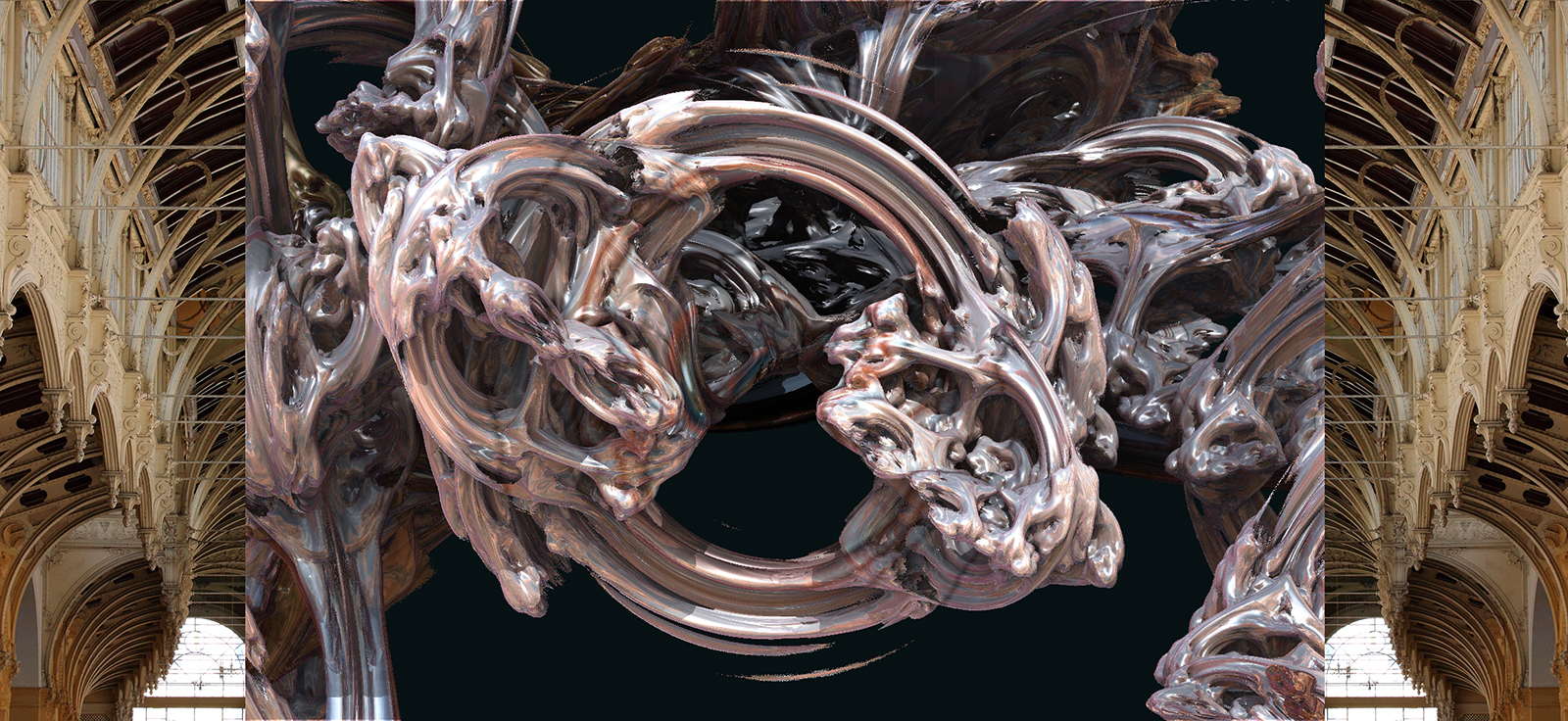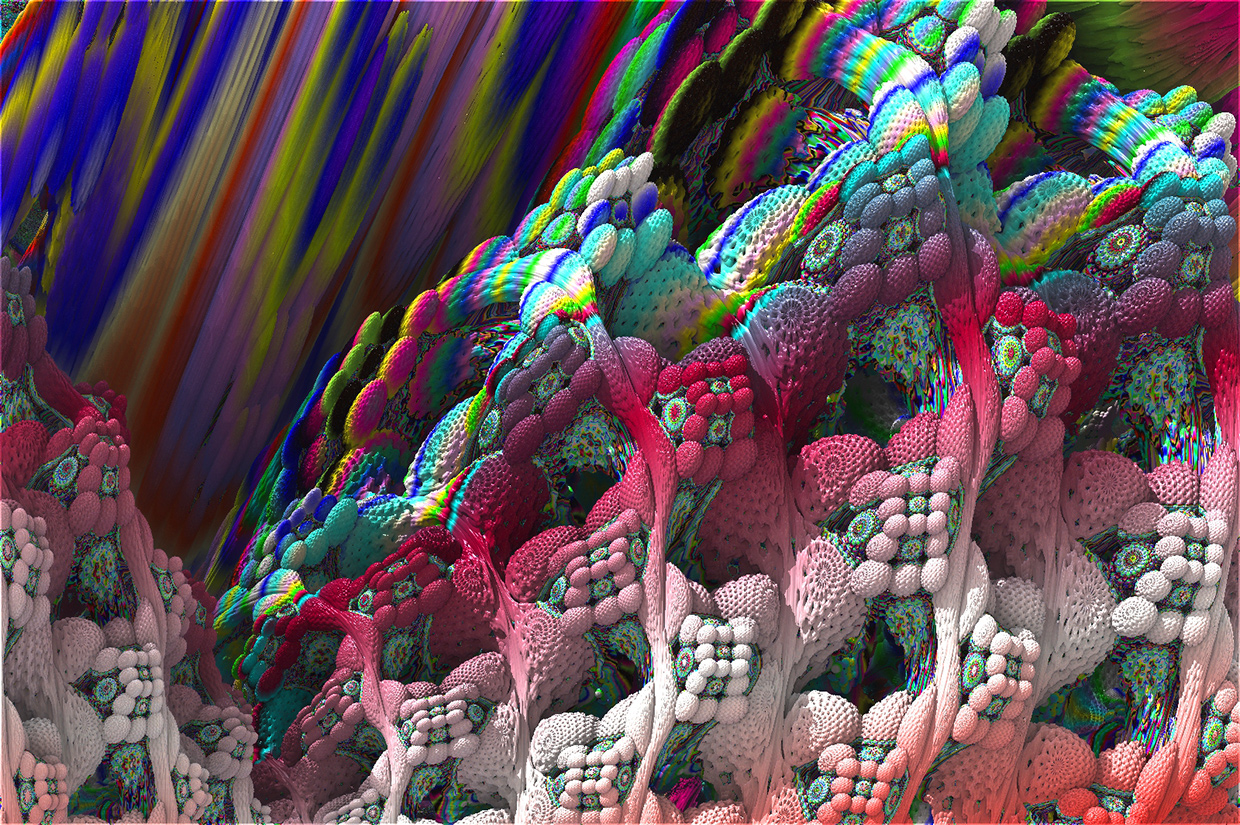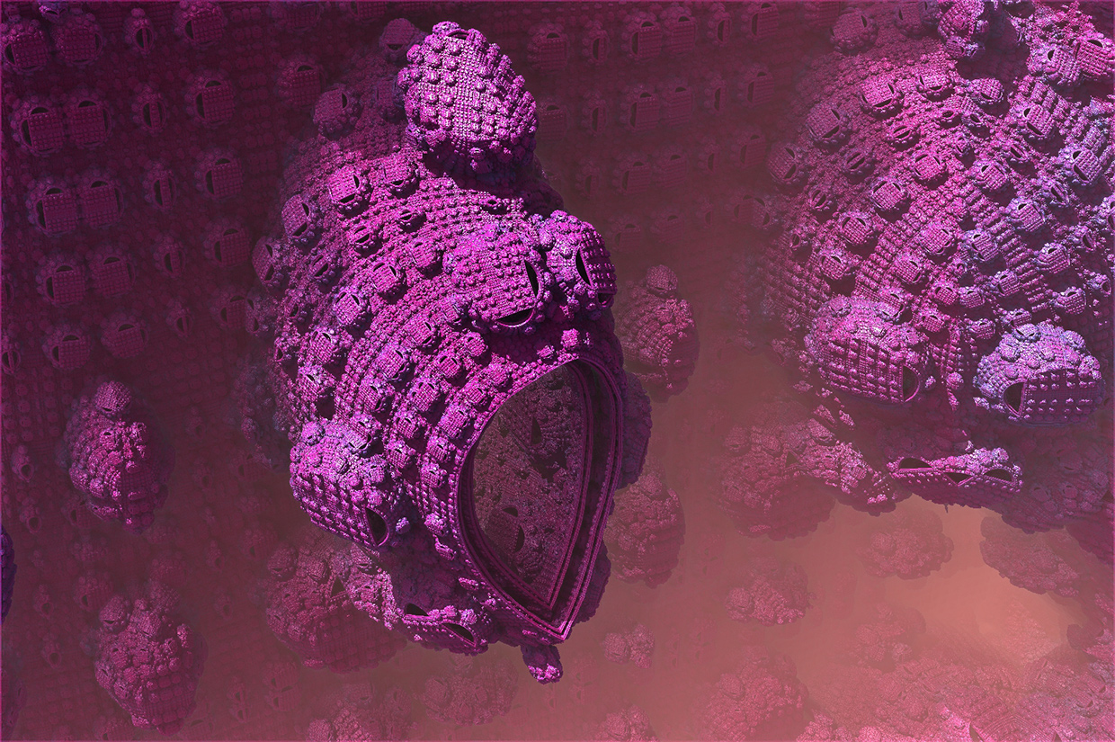 Die 3D Bilder zeigen abstrakte, mittels mathematischer Formeln erzeugte Objekte.